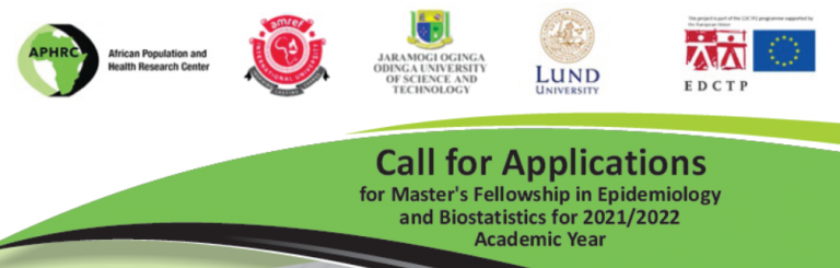 APHRC in collaboration with the Amref International University (AMIU) and Jaramogi Oginga Odinga University of Science and Technology (JOOUST) in Kenya invites suitably qualified candidates to apply for a postgraduate fellowship in a Master’s Degree Programme in Epidemiology and Biostatistics.