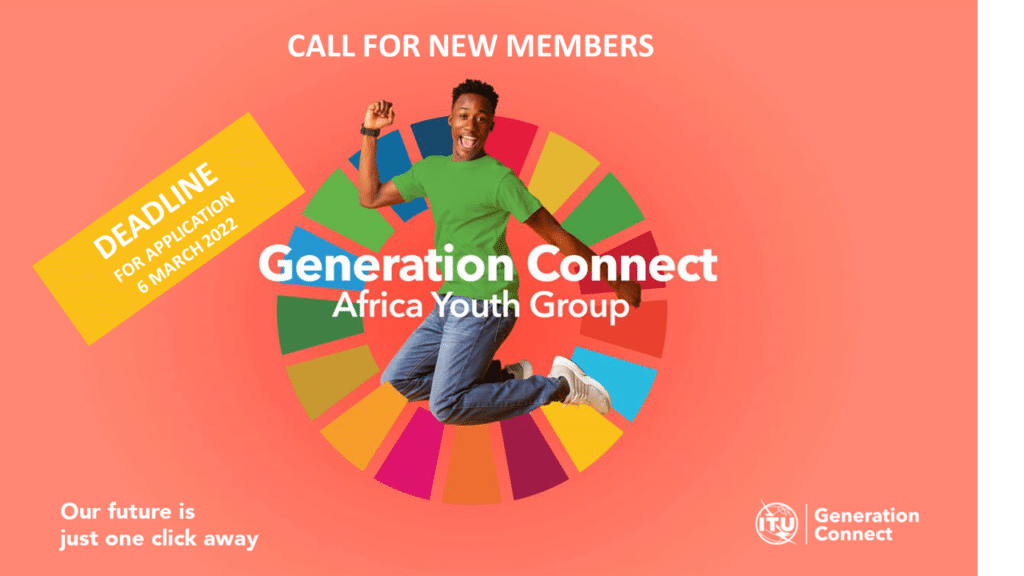 How to Apply for ITU Generation Connect – Africa Youth Group: African youth are kindly invited to submit their candidatures through the online form by 6th March 2022 and would like to encourage the participation of girls in this initiative.