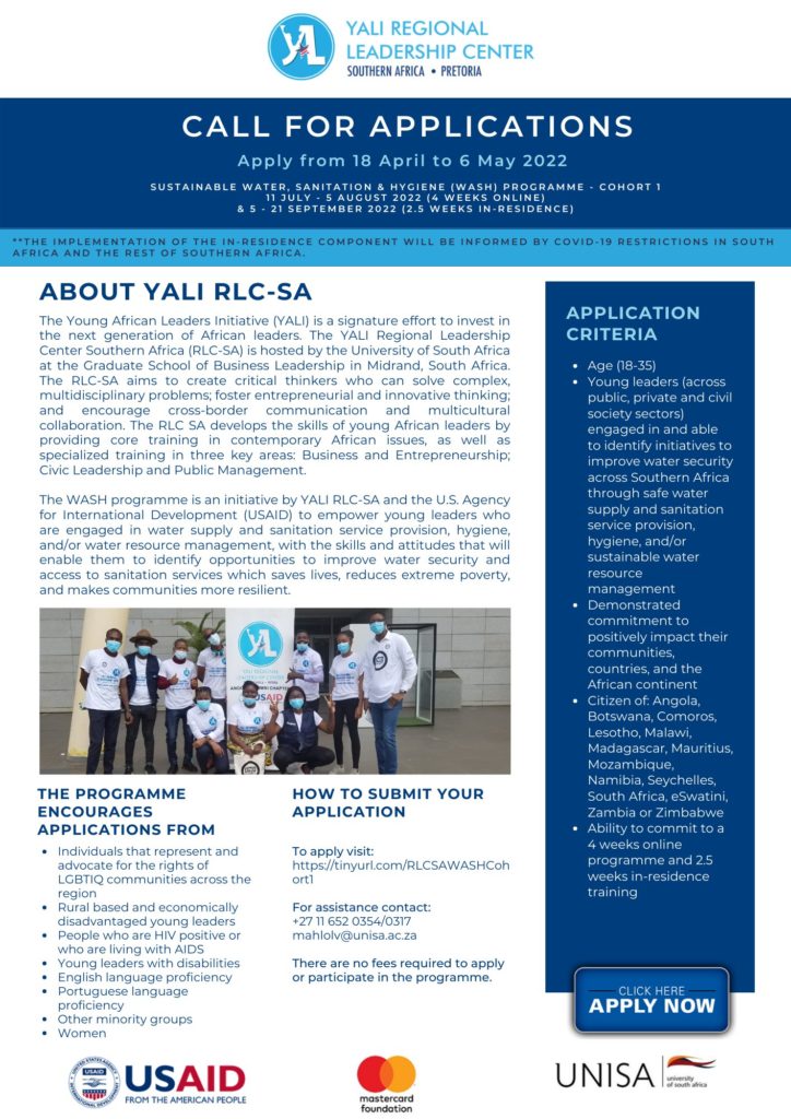 How to Apply for YALI RLC South Africa Sustainable Water, Sanitation & Hygiene (WASH) Programme: