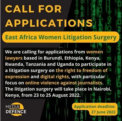 Media Defence East Africa Women Litigation Surgery 2022 – Call for Applications