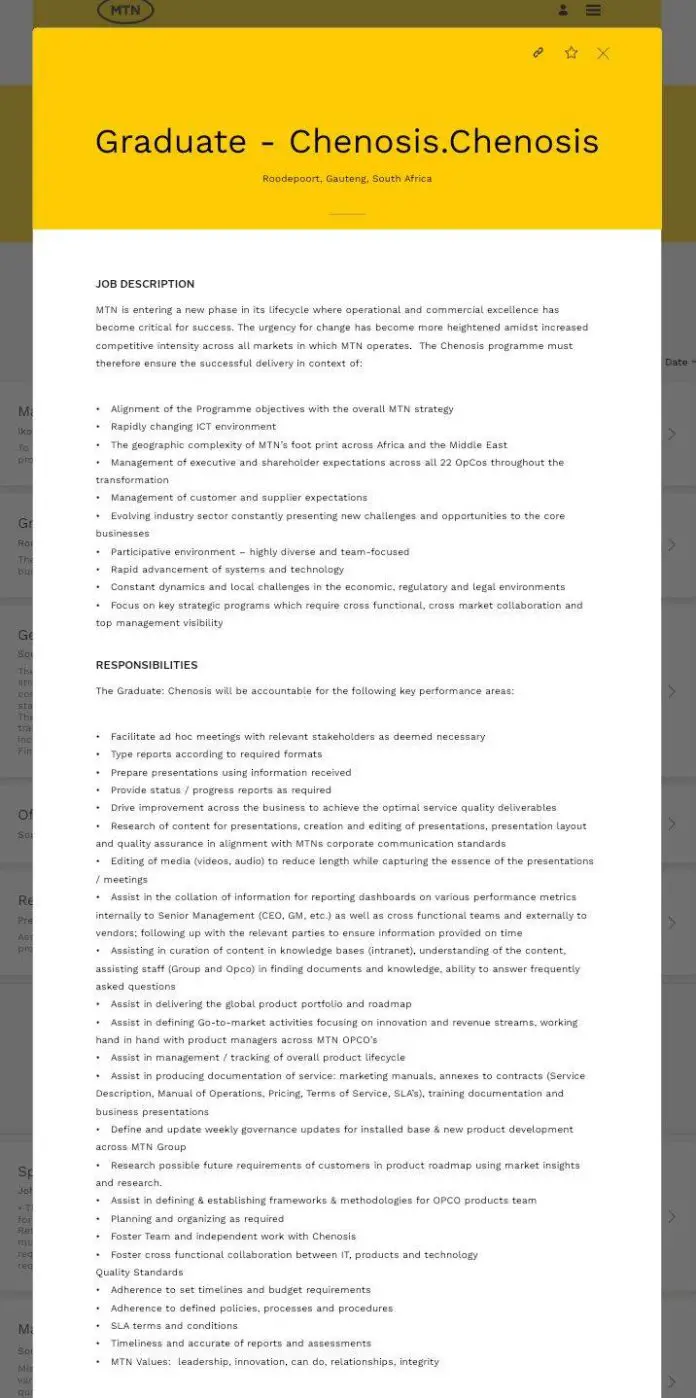 MTN Chenosis Graduate Programme 2023 for South Africans. Apply below.