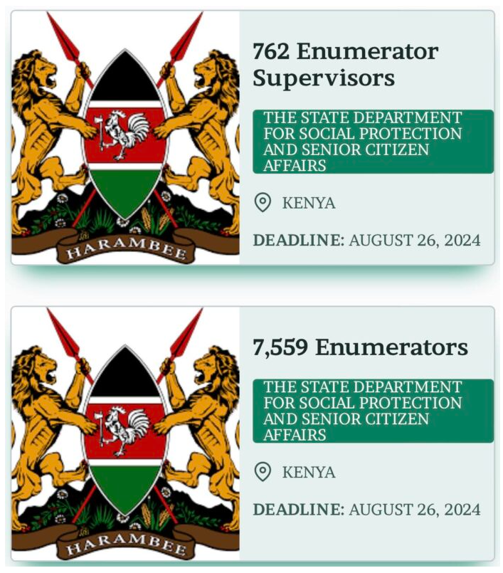APPLY: Kenya Social Protection Enumerators 2024 Recruitment for Numerous Kenyans. Apply below.