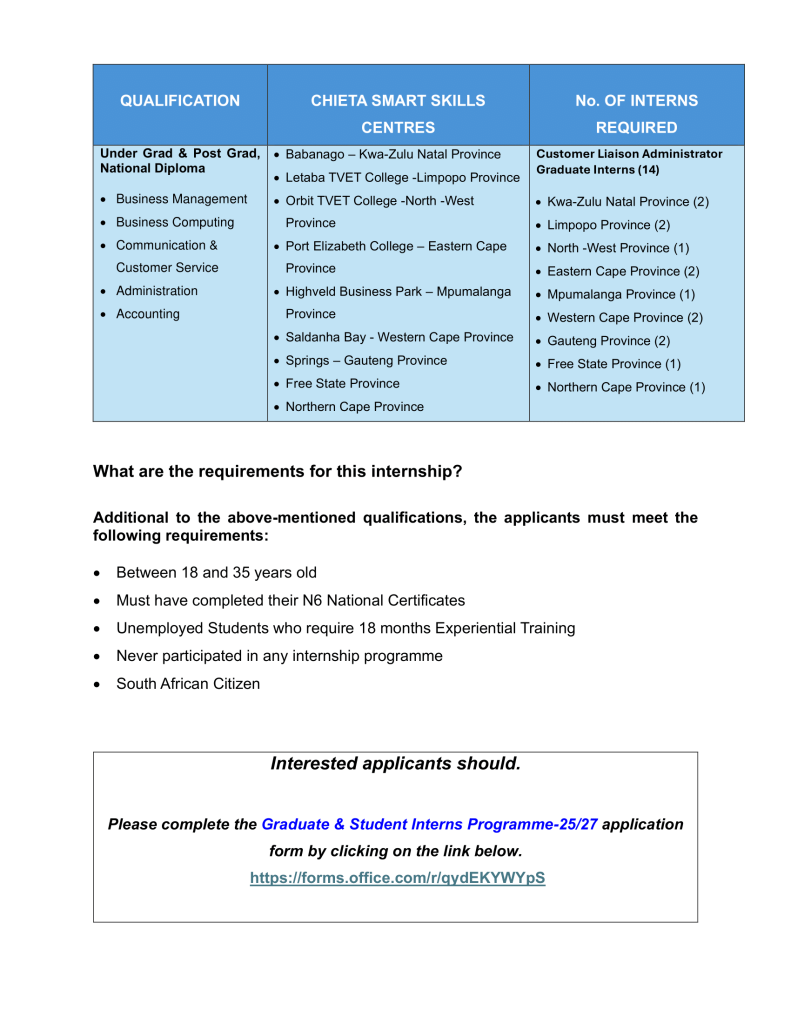 How to Apply: Interested applicants should please click and complete the Graduate & Student Interns Programme-23/25 application form HERE.